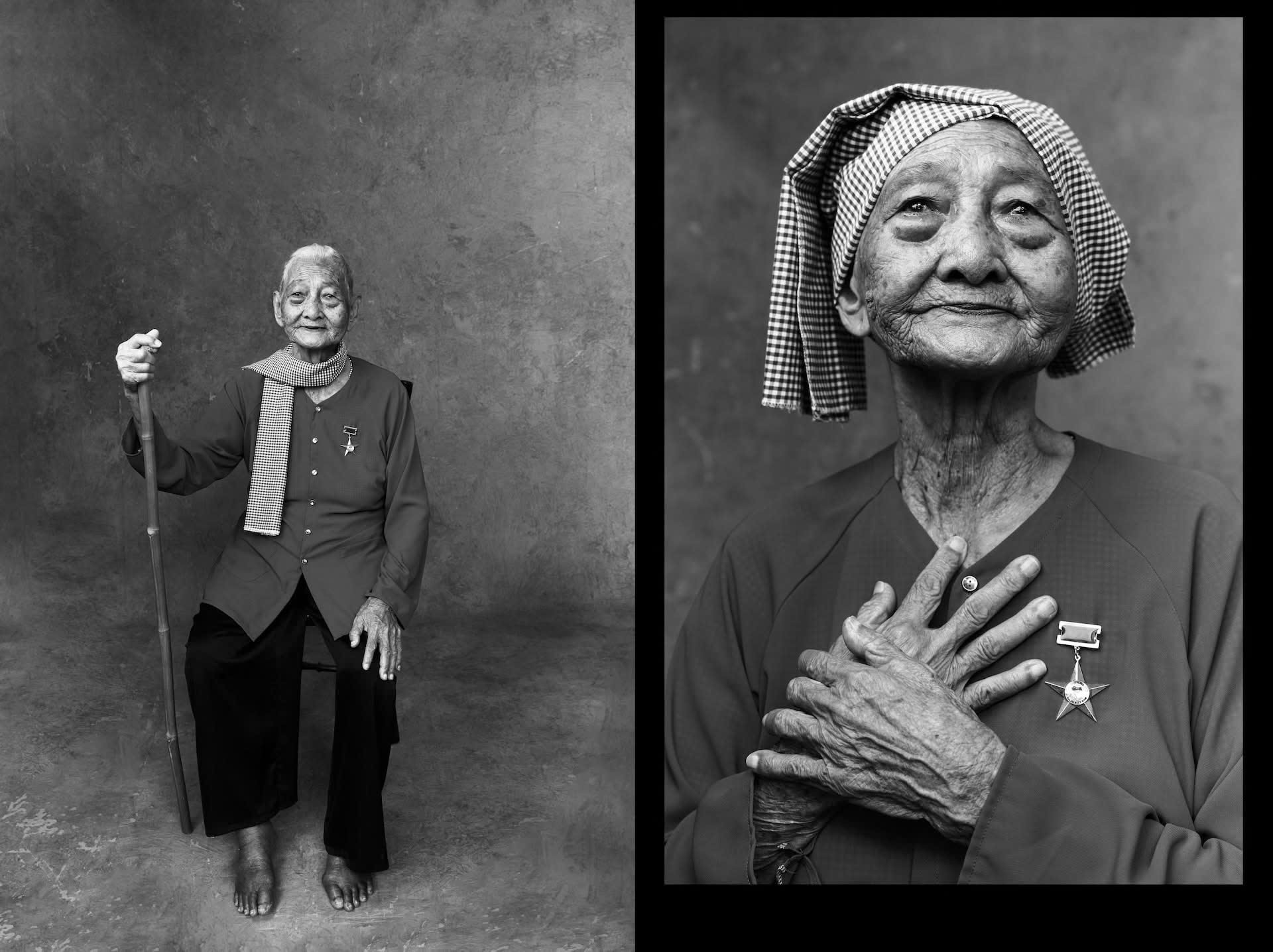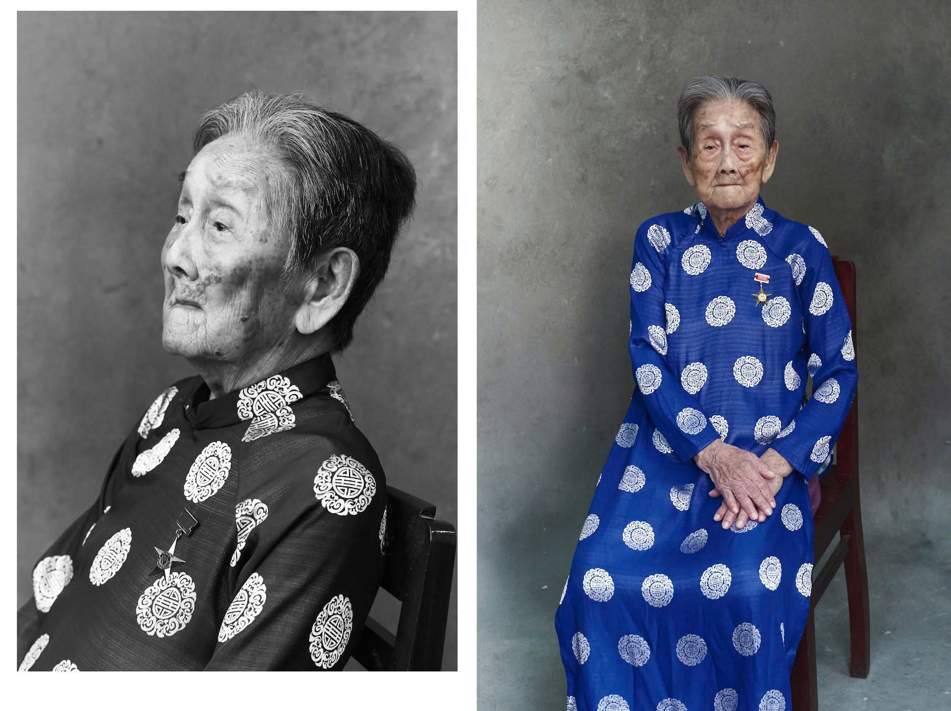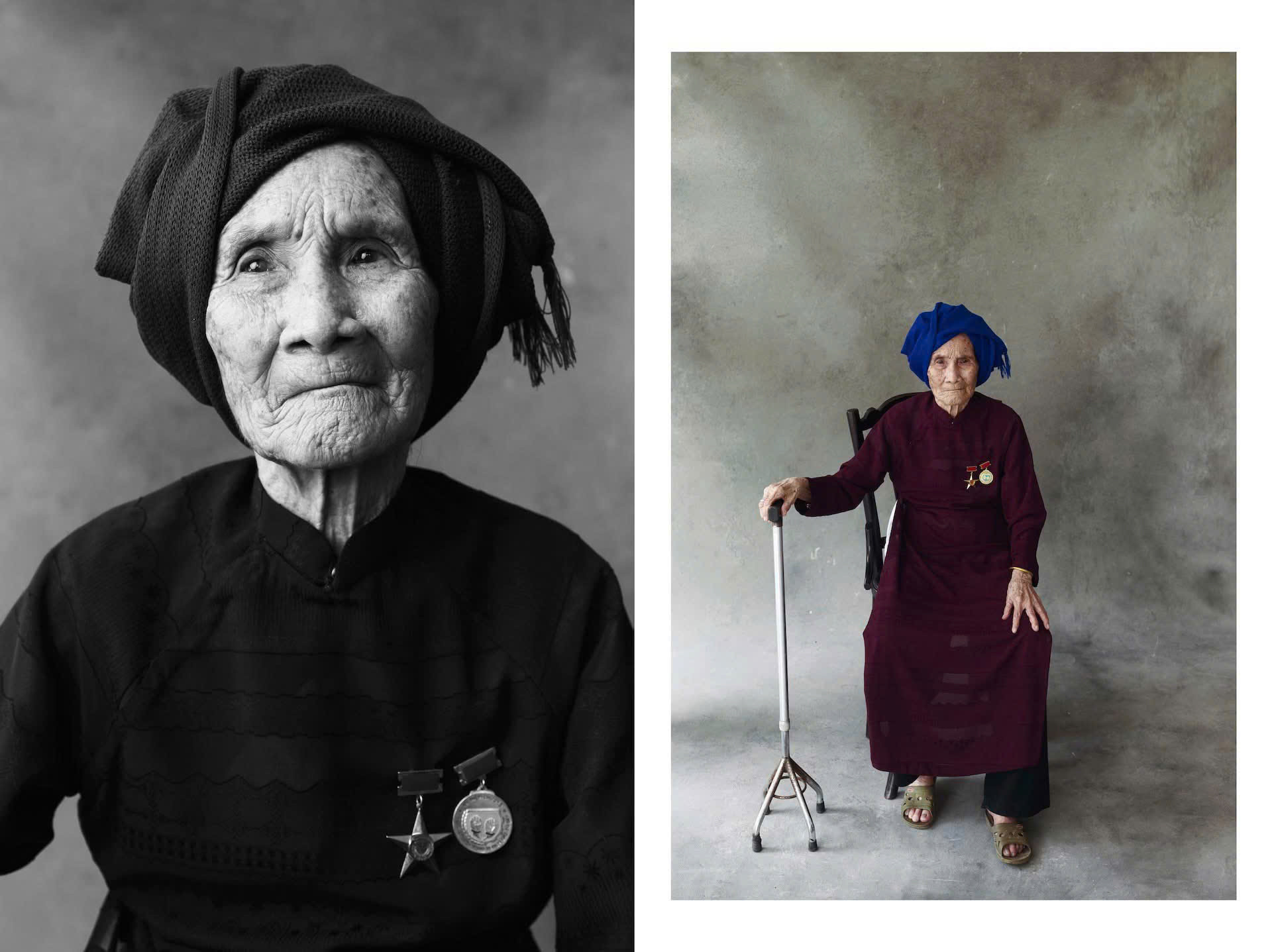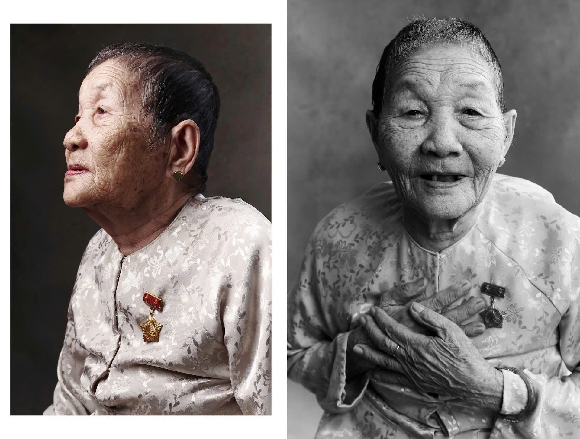 Dưới ống kính của nhiếp ảnh gia Milor Trần, chỉ với phông nền xám đơn giản, một ánh đèn dịu nhẹ, từng bức chân dung hiện lên như những "chứng nhân thầm lặng", lưu giữ ký ức và tinh thần bất khuất qua ánh mắt, nụ cười và từng nếp nhăn in dấu thời gian trên khuôn mặt các mẹ.