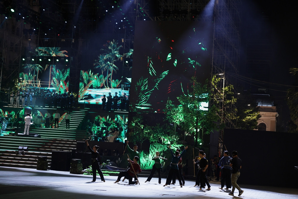 Khung cảnh rộng lớn, ánh sáng rực rỡ và hiệu ứng hình ảnh chân thực đã biến nơi đây thành một sân khấu thiên nhiên đặc sắc. Hơn 17 tiết mục không đơn thuần là những màn biểu diễn mà còn là từng câu chuyện tái hiện quá khứ hào hùng góp phần khơi dậy những giá trị thiêng liêng của Tổ quốc trong lòng người dân Việt Nam.