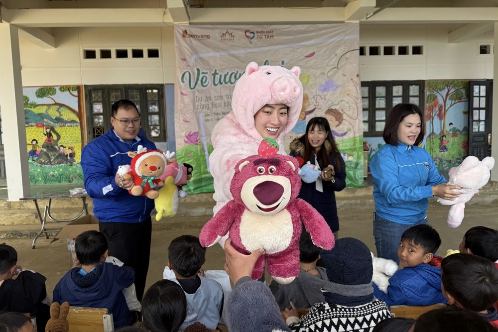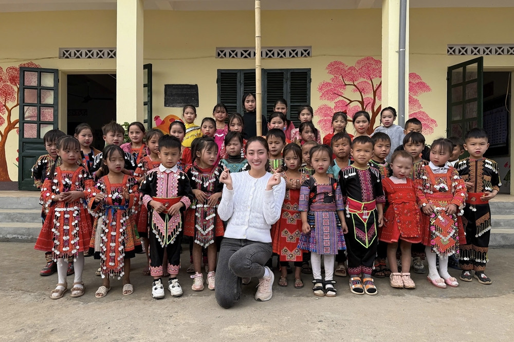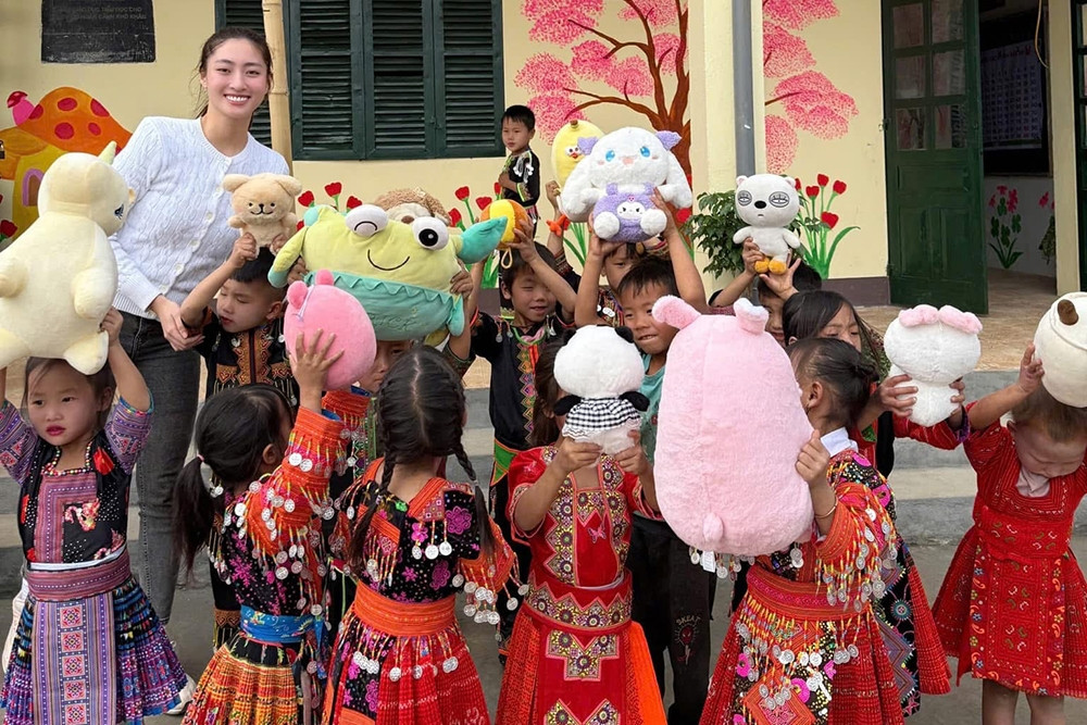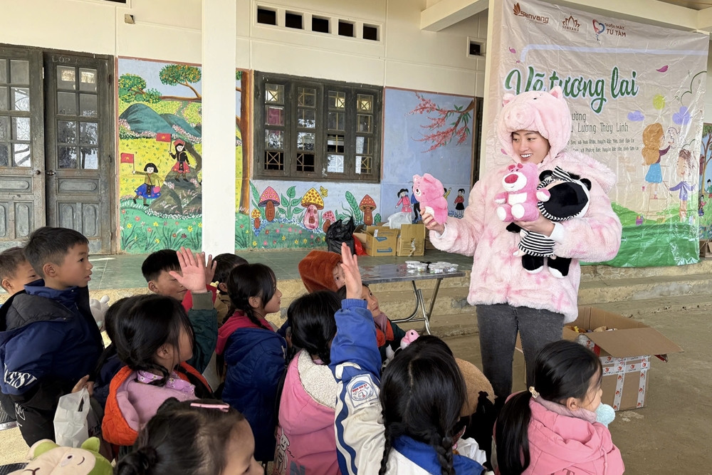 Tại điểm trường bản Tam Hợp, ngoài việc sơn sửa lại trường học, Lương Thùy Linh còn hỗ trợ xây dựng nhà vệ sinh mới nhằm cải thiện điều kiện sinh hoạt cơ bản cho thầy và trò. Người đẹp cũng trực tiếp trao tặng các phần quà thiết thực như tập vở, bút viết, sáp màu, gấu bông cùng nhiều vật dụng học tập khác cho các em nhỏ.