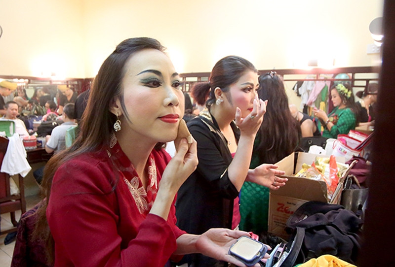"Tôi sang Nhà hát Tuồng Việt Nam, đu ở cửa sổ xem nhiều vở diễn, tiết mục các cô, các chú NSND Tiến Thọ, NSND Mẫn Thu, NSND Đàm Liên, NSND Hoàng Khiềm tập luyện", chị chia sẻ.